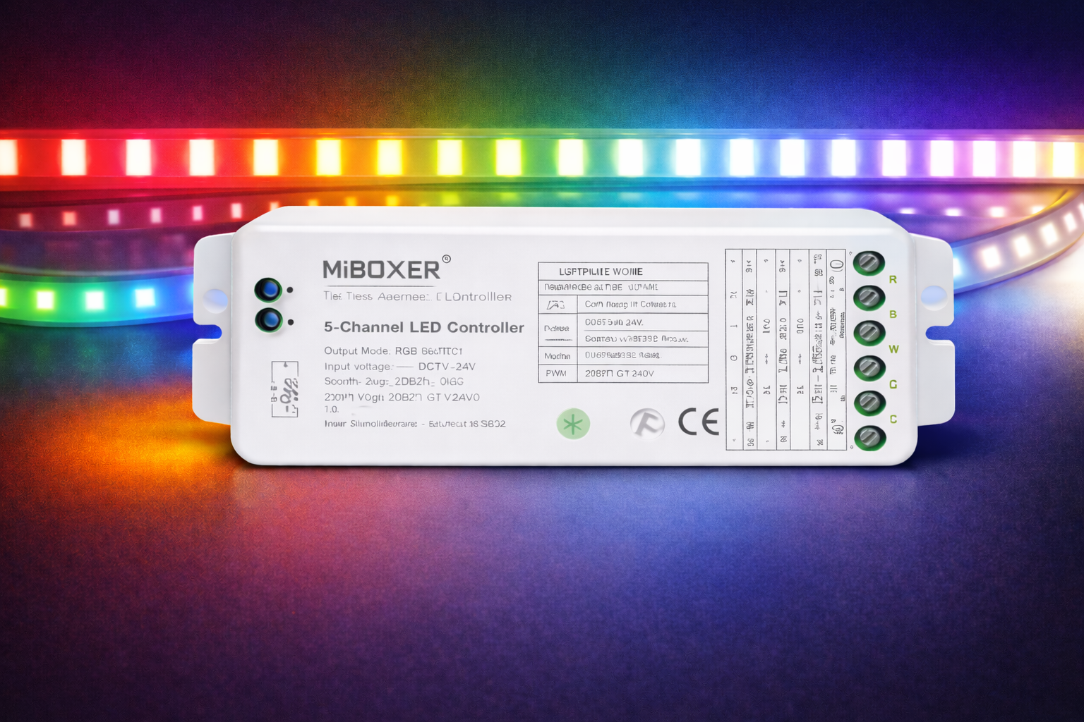 Ein MiBoxer Controller ist ein Steuergerät, das zwischen Netzteil/Versorgung und LED-Last sitzt und Steuersignale (z. B. Dimmen, Farbsteuerung, Farbtemperatur) je nach Modell umsetzt. Maßgeblich sind der unterstützte LED-Typ (z. B. einfarbig, CCT, RGB, RGBW, RGB+CCT je nach Modell), die Versorgungsspannung und die Kanal-/Ausgangslogik.