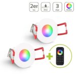 Terrassen Einbaustrahler LED mit Fernbedienung 3W RGBW IP65 – Gehäusefarbe: weiß – Anzahl: 8x